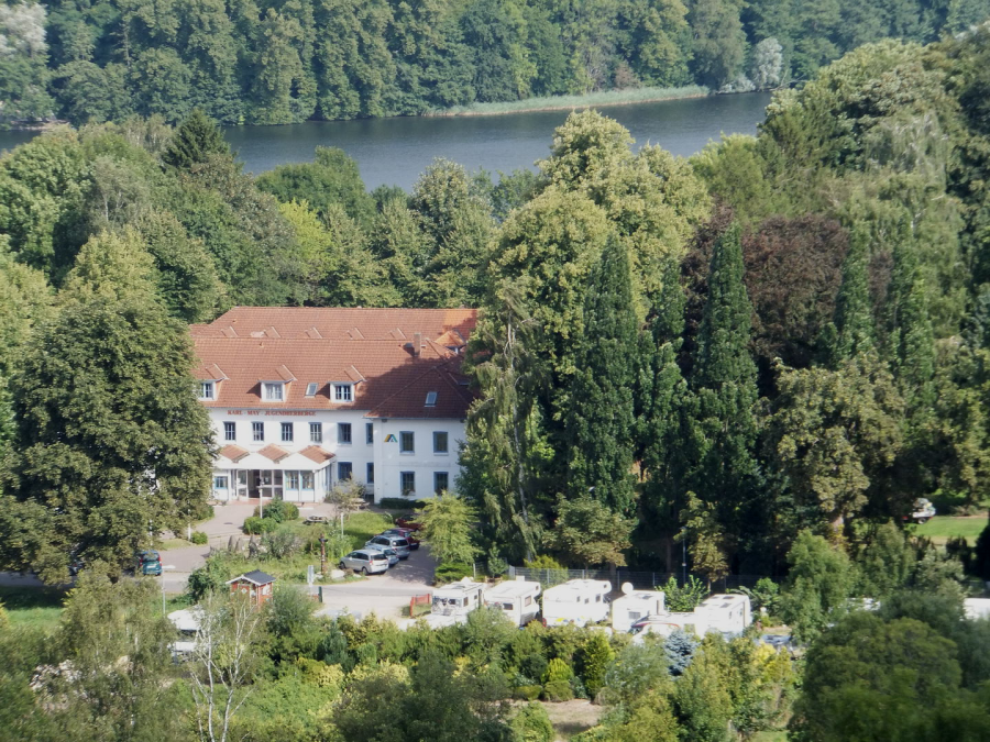 Blick vom Kalkberg auf unseren Platz, Jugendherberge und im Hintergrund der Segeberger See